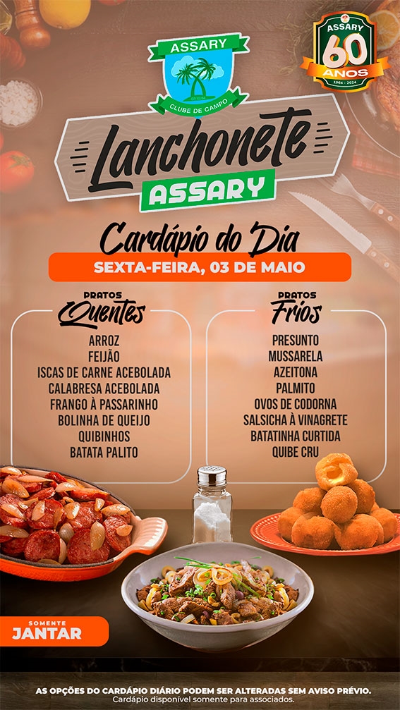 As opções do cardápio podem ser alteradas sem aviso prévio.